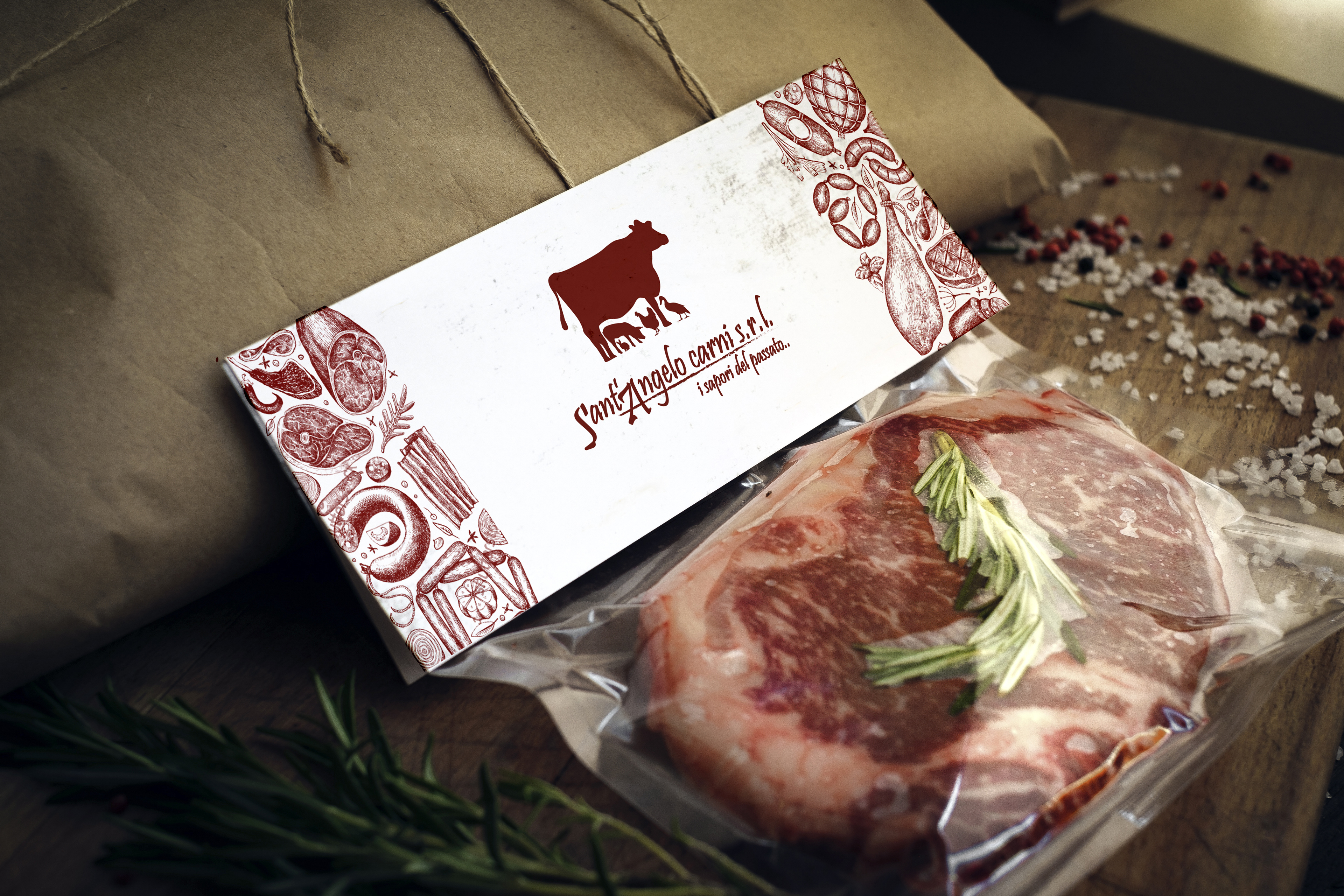 Sviluppo immagine coordinata e adv per negozio di macelleria. Dal logo ai gadget natalizi, dalla cartellonisitica interna alla comunicazione social.